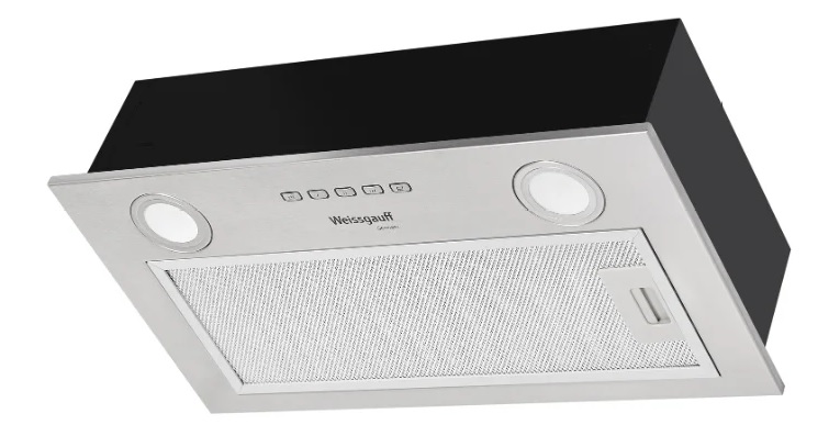 Bir sonraki seçenek gömülüdür. Bu tür davlumbazlar, doğrudan sobanın üzerinde bulunan kabine monte edilir. Görünmez kalırlar, mutfağı karıştırmazlar. Bu tür modeller, çalışma alanını arttırmanın mümkün olduğu için geri çekilebilir bir panele sahip olabilir.