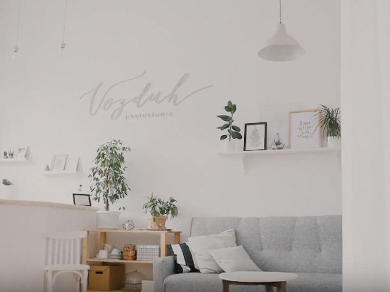 Photo Studio Vozduh şehir merkezinde yer almakta olup toplam 140 m2 alana sahiptir. Bu meydanda fotoğraf çekimleri için iki salonun yanı sıra giyinme odası ve özel bekleme alanı bulunuyor.