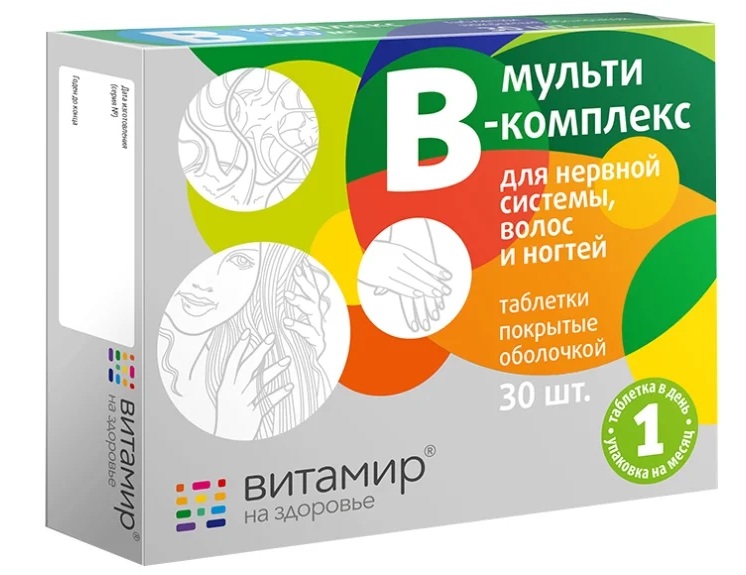 Çoklu B kompleksi Vitamir sekmesi. p / o No. 30 cilt, saç ve tırnakların yanı sıra sinir sisteminin durumunu iyileştirmek için tasarlanmıştır. 18 yaş üstü kişilere yöneliktir. Biyolojik gıda takviyesi olarak, ek B vitamini kaynağı olarak, inositol, kolin içeren para-aminobenzoik asit olarak kullanılır.