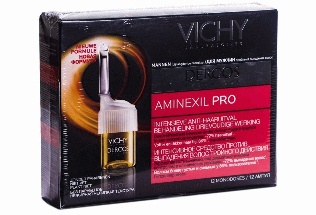 Fransız yapımı vitaminler, saç köküne uygulanması gereken sıvı bir solüsyondur. Bu vitamin kompleksinin aktif maddeleri arasında Vichy termal suyu, arginin, aminexil ve saç için diğer faydalı maddeler bulunur.