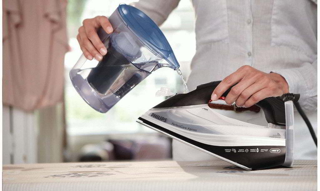 Ütüde, özel bir tankta 350 ml'ye kadar yerleştirilir. su.