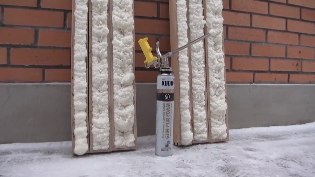 Kış köpüğü. Bileşimi yazdan farklıdır, dolgu macunu şiddetli donlarda kullanılabilir, çünkü -20 dereceye kadar sıcaklıklara dayanabilir.