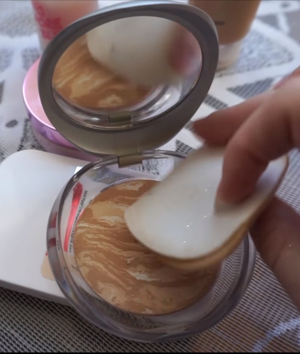Ce type de poudre se fond très bien avec le fond de teint et se répartit assez facilement et uniformément au pinceau. C'est une erreur d'appliquer de la poudre sur un fond de teint qui n'a pas encore séché ou immédiatement après l'application d'une crème hydratante, vous pouvez avoir des taches à des endroits qui n'ont pas encore séché.