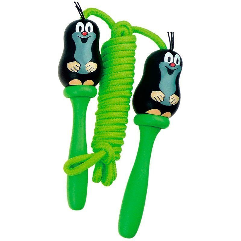 Longueur - 2,2 mètres. Âge - de 3 à 14 ans. Corde à sauter lumineuse de différentes couleurs. Sur la poignée se trouve un jouet en forme de taupe. Le prix moyen est de 250 roubles.