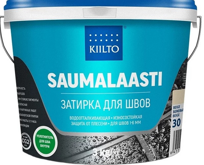 La palette de couleurs est représentée par 32 nuances. Le prix moyen du Kiilto Saumalaasti pesant 1 kg est de 520 roubles.